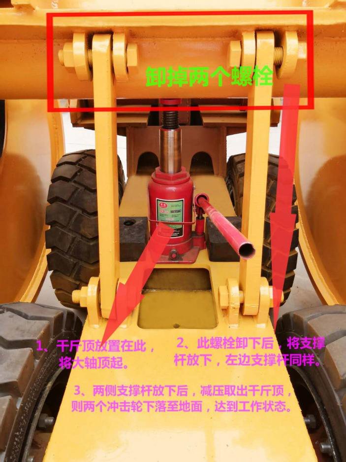 液壓舉升油缸主要(yào)用(yòng)于專用(yòng)牽引車(chē♠π)轉場(chǎng)時(shí)升起鋼輪使用(yòng),裝載☆π←機(jī)使用(yòng)須連接兩根長(cháng)達10米的(de)油管,≥™β•不(bù)建議(yì)裝載機(jī)使用(yòng)。 |